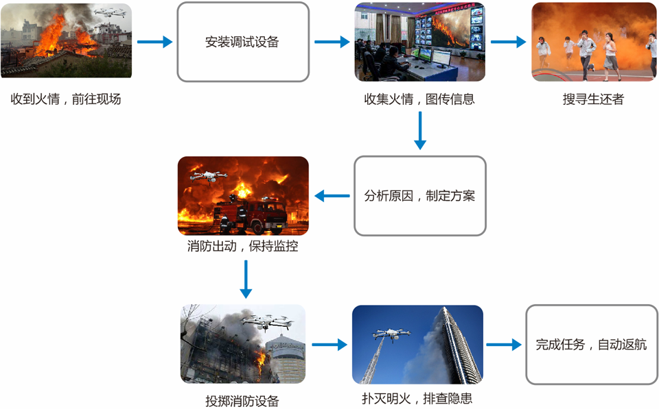 在各種災害中,火災是最經常、最普遍地威脅公眾安全和社會發展的主要災害之一。人類能夠對火進行利用和控制,是文明進步的一個重要標志。所以說人類使用火的歷史與同火災作斗爭的歷史是相伴相生的。現在社會生活中,火災已經成為威脅公共安全,危害人們生命財產的一種多發性災害。據統計,全世界每天發生火災一萬多起,死亡2000多人,傷3000多人,造成直接損失達十多億美元。這只是火災造成的直接經濟損失,據估算,間接經濟損失是直接損失的幾十倍。所以消防的重要性從來都是不容忽視,無人機技術應用于消防領域,其靈活、高效、精準的特點成為消防部隊新的作戰伙伴。 |