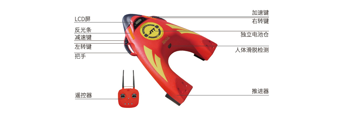 自帶人體檢測模塊,落水者若脫離機器人,R1自動停止滑行等待落水者再次抓住R1