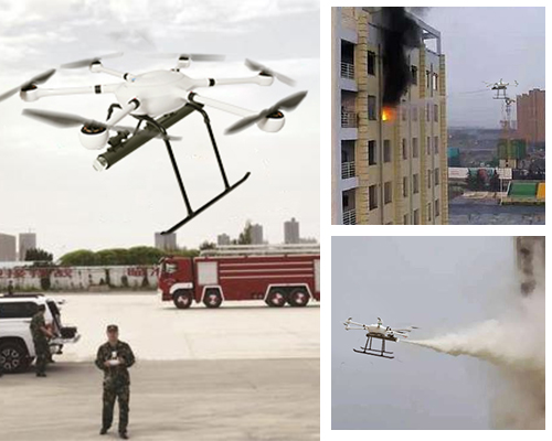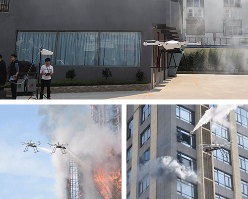 國內(nèi)外高層建筑火災多有發(fā)生,即使有充足精良的消防器材裝備,比如消防車云梯,也因為高度限制,而沒有及時控制火災進而難以撲滅,最終造成生命和財產(chǎn)的損失。通過T60無人機搭載泡沫滅火系統(tǒng)和高清攝像機,利用其飛控系統(tǒng)的優(yōu)勢,在1分鐘時間內(nèi),可以攜帶泡沫滅火掛載飛行至60-100米的高樓上,利用ABC干粉滅火彈滅火,達到在消防隊員抵達前的快速滅火的效果,同時,通過攝像機的圖傳系統(tǒng)回傳的畫面,可以迅速觀察火災情況,予以決策判斷。