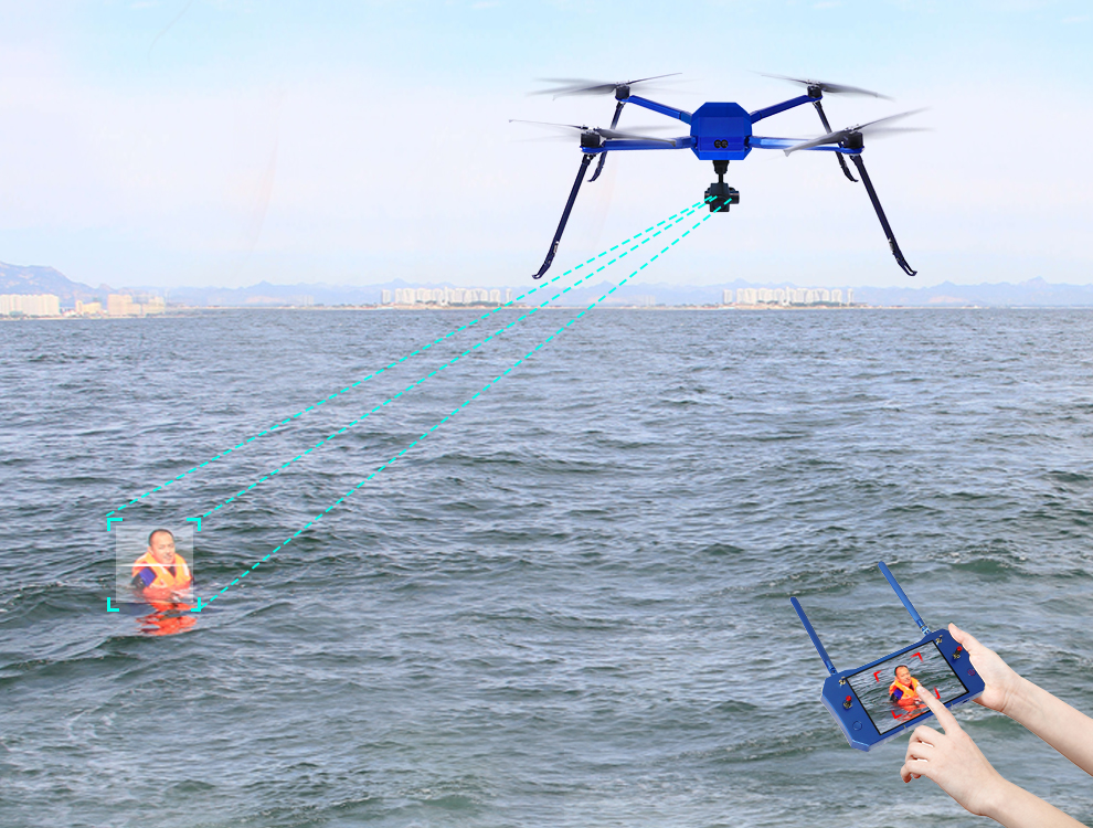 為了更全面的保護環境,靠近海島的區域,往往都不會有太全面的監視,有許多游客包括小孩,有的甚至脫掉救生衣,直接去體驗大自然的美好。然而,意外經常會發生。在深圳某地,有個小孩為了證明自己會游泳,腳被海底下大卷的海草給絆住了,一時間因為心慌,身體在大海上失衡了,隨即危險襲來。智璟科技C85無人機在海島上巡航時候,就發現了水面異樣,隨后快速飛去異樣現場觀看,通過人臉識別鎖定人臉后,啟用自動跟隨,精準定位到孩子的具體位置,當地面站看到具體位置后,救援人員隨即派出水上救援機器人前去營救,小孩抓到機器人后便恢復了平衡(機器人擁有75kg的浮力,相當于四個傳統泳圈),之后救援人員開啟一鍵自動返航,把小孩安全帶回岸上。