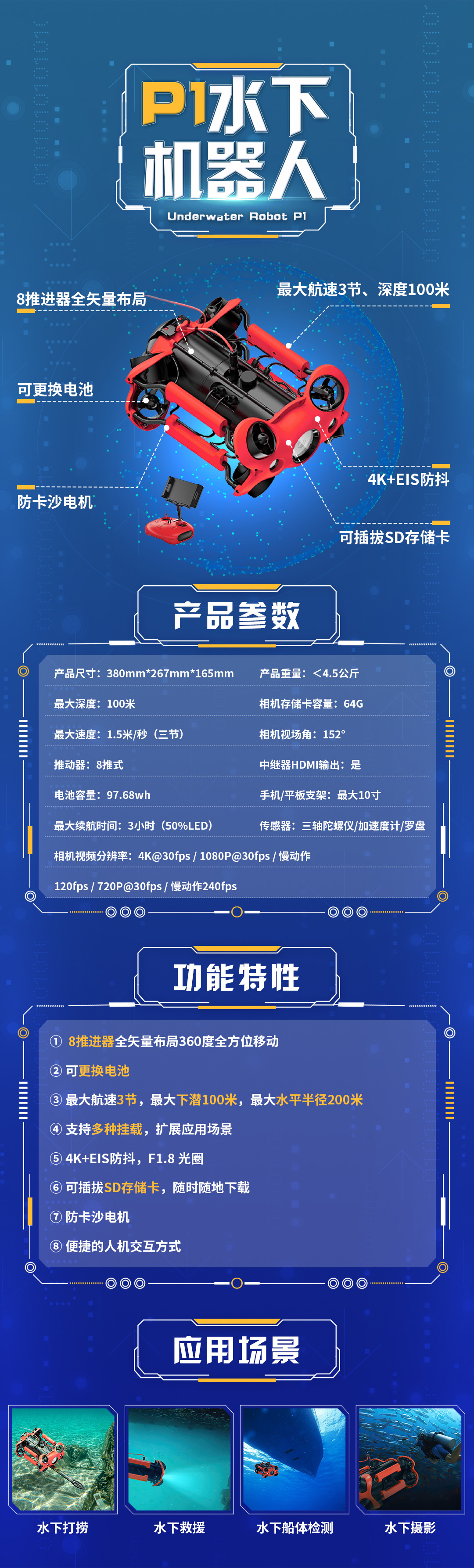 巴中某河段常出現(xiàn)遇難者事故,某救援隊伍為了之后能快速響應救援工作,著重分析了該市水域,其屬于城區(qū)河段,累積淤泥河沙較多,水質較差而且能見度低,通過蛙人打撈也可能極其耗費時間和精力,而且存在一定的風險,因此救援隊得出結論,可以通過P1水下機器人打撈來解決這些難題,同時也能獲取到更多有效水底信息。