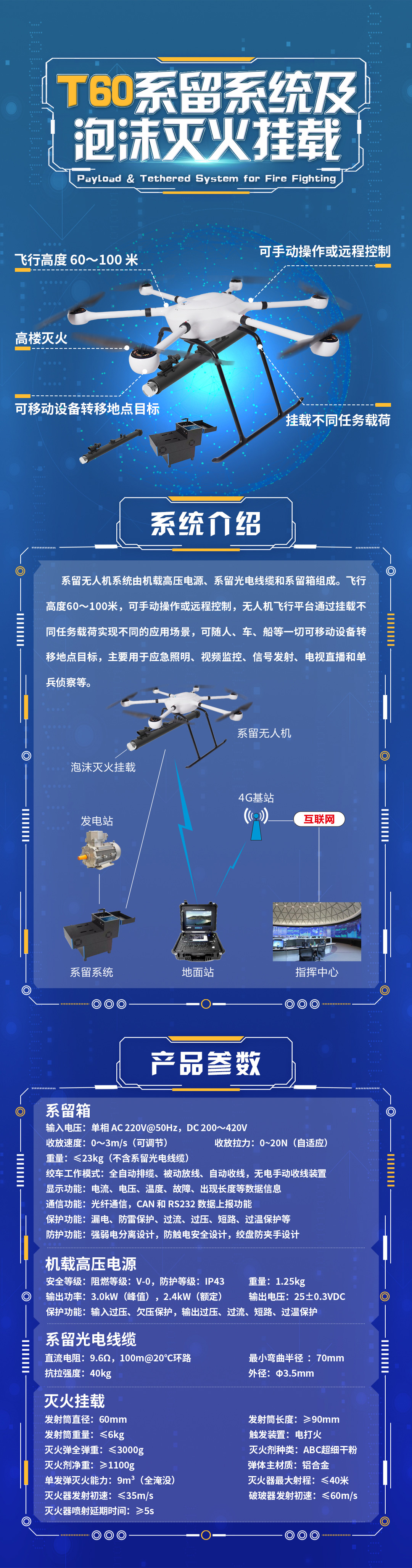 城市高樓林立,大海茫茫邊際。看上去不可能存在風險的地方,往往最有可能有危險,并且隨時會發(fā)生。在城市里,消防車云梯標配高度在25米左右,相當于8-10層樓的高度,而當代經(jīng)濟發(fā)展,許多高樓大廈還遠遠不止10層,有的還達到50甚至80米的高度,這個時候又怎樣快速精準地知曉大樓內的情況并有效實施救援措施呢?同樣地,在大海上,如果發(fā)生了意外,無人機又怎樣快速部署出發(fā)救援呢?C85/T60多旋翼無人機攜系留和泡沫滅火系統(tǒng)、空海一體、救生掛載等,可以實現(xiàn)高樓火災救援、海上救援。