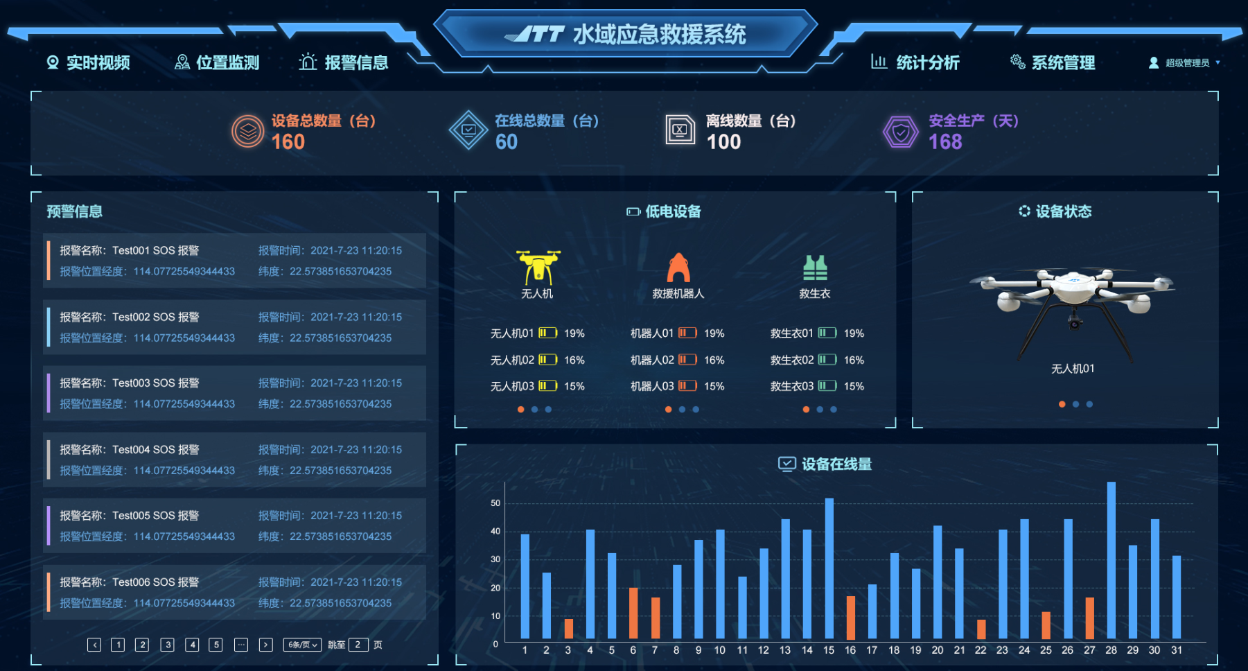 水域應(yīng)急救援系統(tǒng)采用C/S、B/S混合式、多層系統(tǒng)架構(gòu),將水域應(yīng)急救援系統(tǒng)(空中巡查系統(tǒng),水域救援系統(tǒng),作業(yè)平臺(tái)AI安全預(yù)警系統(tǒng),作業(yè)人員防溺水監(jiān)測(cè)預(yù)警系統(tǒng)等)、報(bào)警聯(lián)動(dòng)等全部融合形成統(tǒng)一的平臺(tái)系統(tǒng),滿足了水域的應(yīng)急救援需求,大大降低了系統(tǒng)使用難度、管理效率顯著提升。