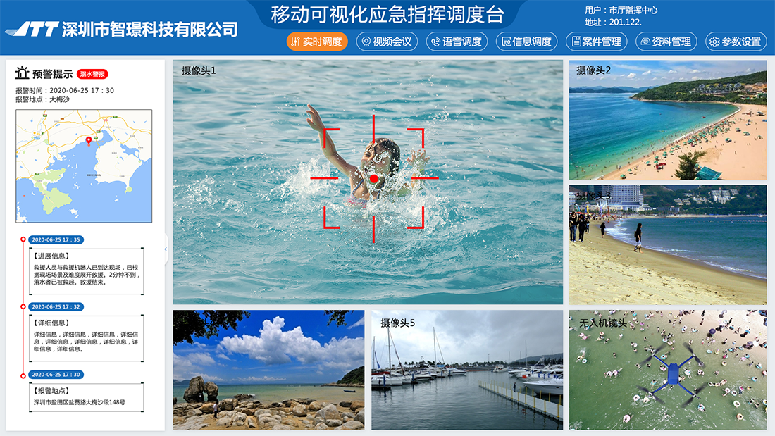 每年4-9月汛期,廣西、貴州、廣東、湖南、江西、重慶等26省年會都遭受洪水災害的影響。據(jù)統(tǒng)計,僅2020年受災人數(shù)就達1122萬。通過水域救援系統(tǒng)則可以提前通過前端監(jiān)測到現(xiàn)場情況,系統(tǒng)同時也集成GIS地圖定位現(xiàn)場區(qū)域,在后端收到圖像后會跟前端聯(lián)動,及時派遣水上救援艇進行多人營救,以提高緊急搜救效率,降低更多損失。