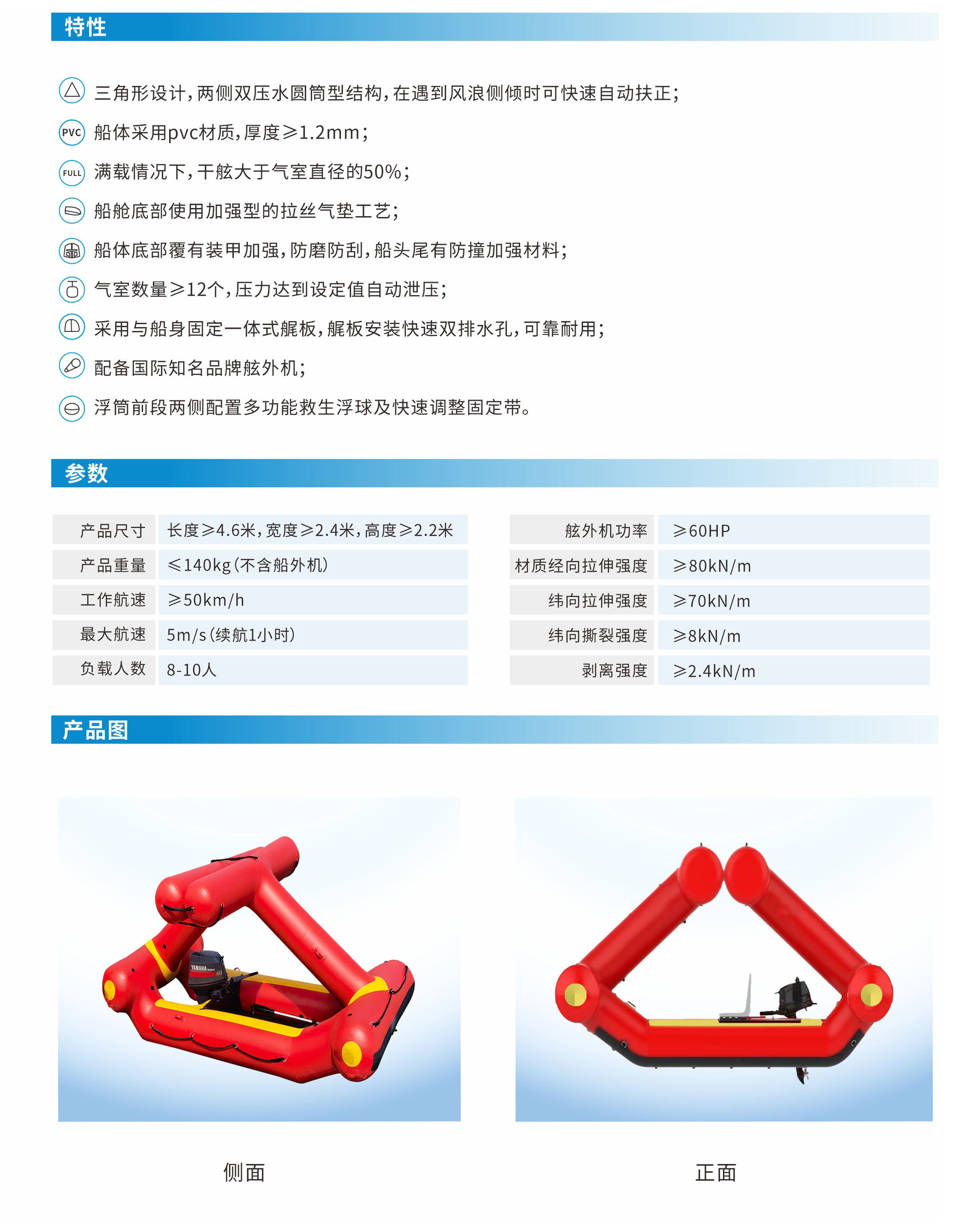 船體采用pvc材質,厚度>1.2mm;