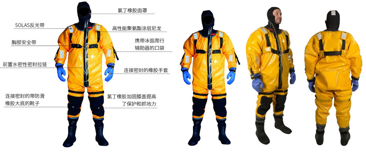 采用320D加粗3層防水透氣復(fù)合尼龍布,層壓復(fù)合面料技術(shù),面料具有超輕、耐磨、抗切割、防水、透氣等功能,可安全可靠的應(yīng)用于寒冷水域救援工作。